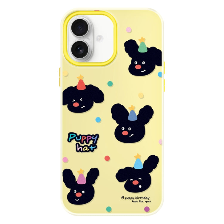 Funda híbrida TPU y Policarbonato iPhone 16 Sombrero de Cachorro (Amarillo)