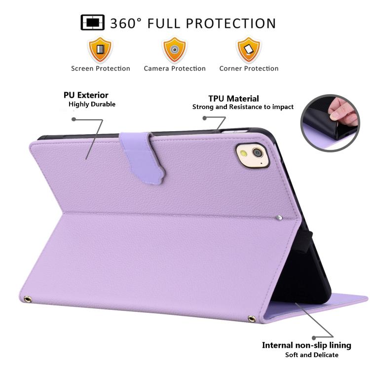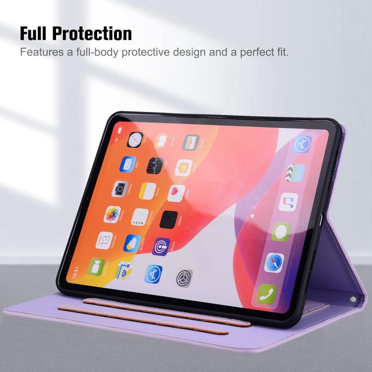 Funda inteligente de piel de lichi con tacto de gato para iPad 10.2 2021 / Air 10.5 (morada)