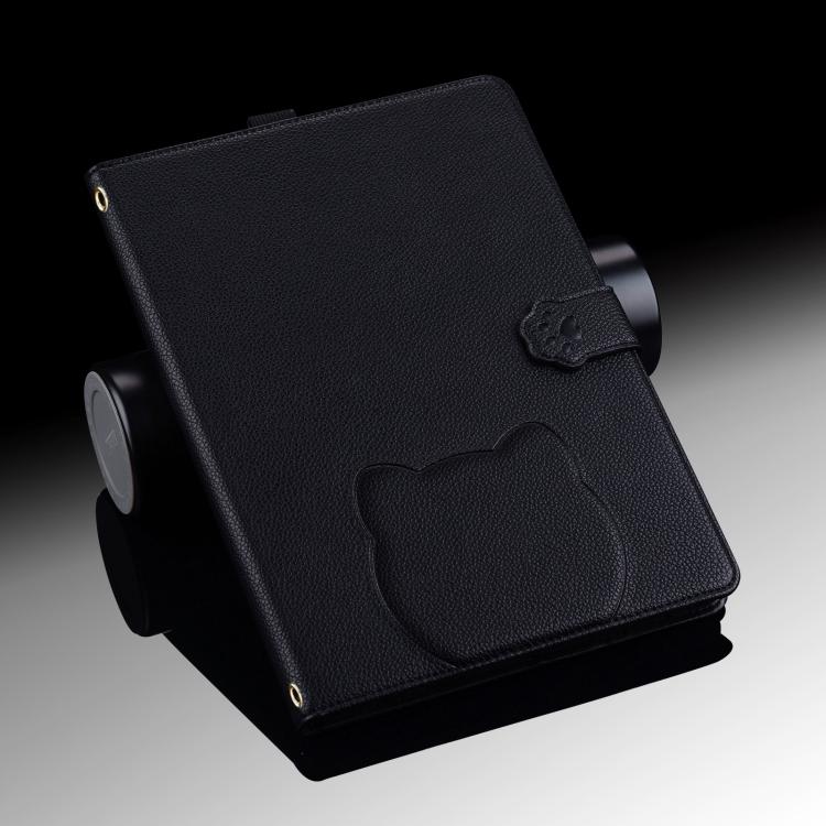 Funda inteligente de piel de lichi con tacto de gato para iPad mini 2024/mini 6 (negra)