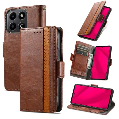 Funda Inteligente Honor 200 Neo Splicing con Hebilla Magnética Doble (Marrón)