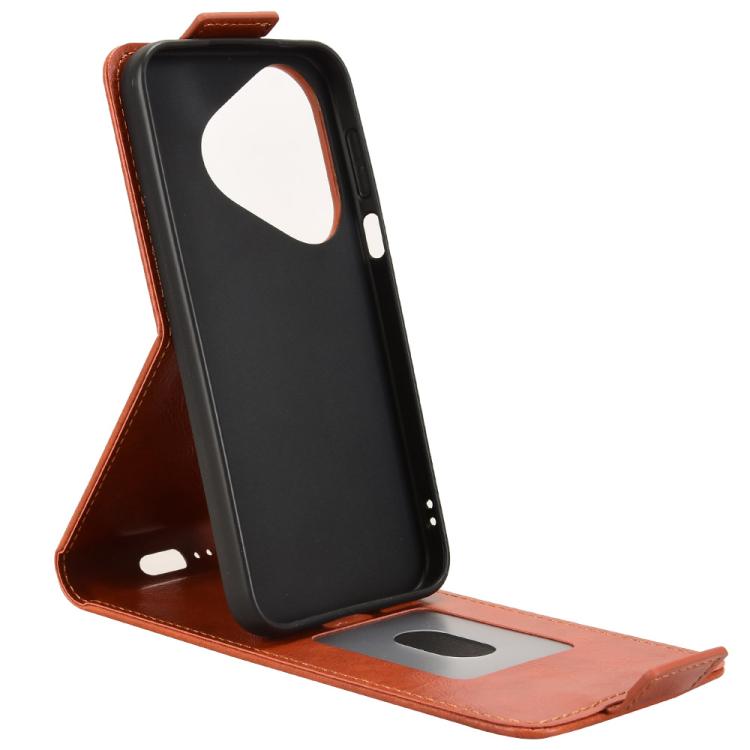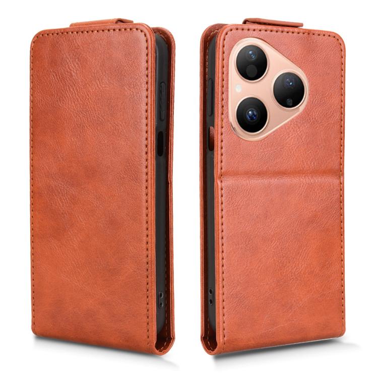 Funda magnética de cuero con tapa vertical y hebilla para Huawei Pura 80 5G (marrón)