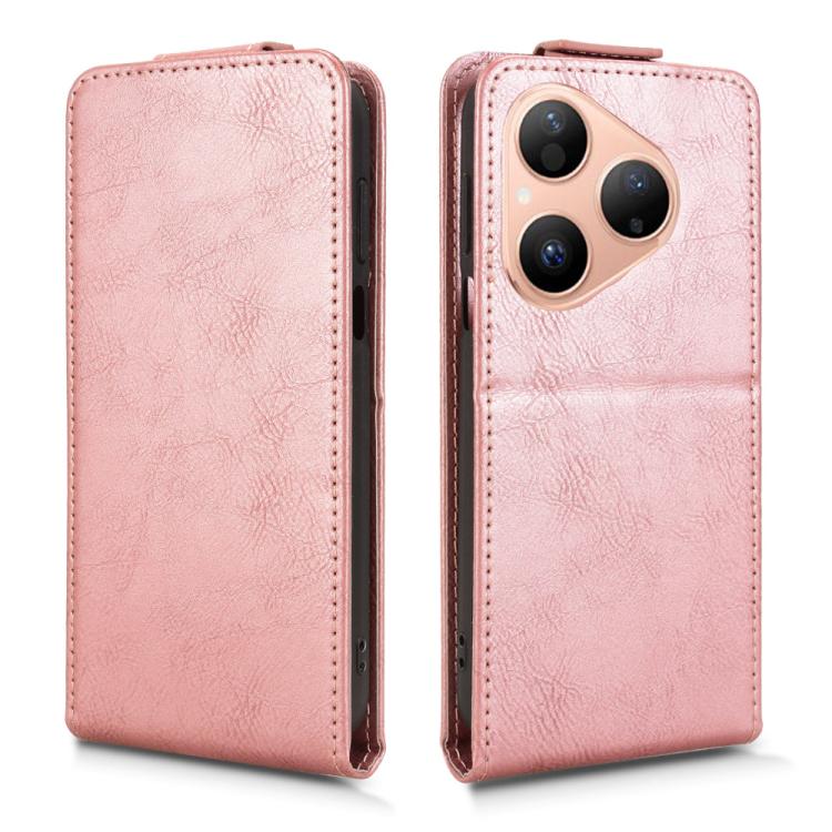Funda magnética de cuero con tapa vertical y hebilla para Huawei Pura 80 5G (oro rosa)