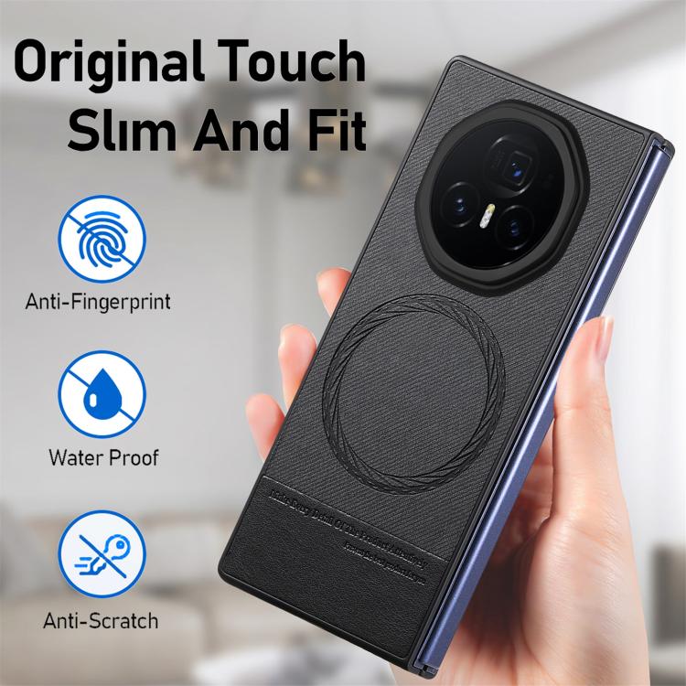 Funda Magnética de Piel y Sarga para Honor Magic V3 (Negra)