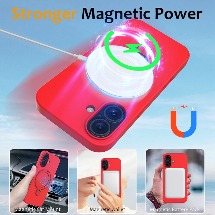 Funda Magnética de Silicona Líquida Magsafe para iPhone 16 Plus con Soporte para Anillo (Rojo)