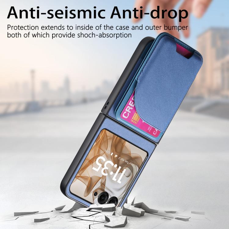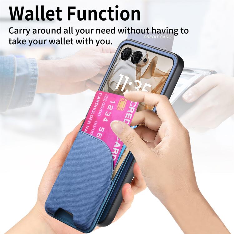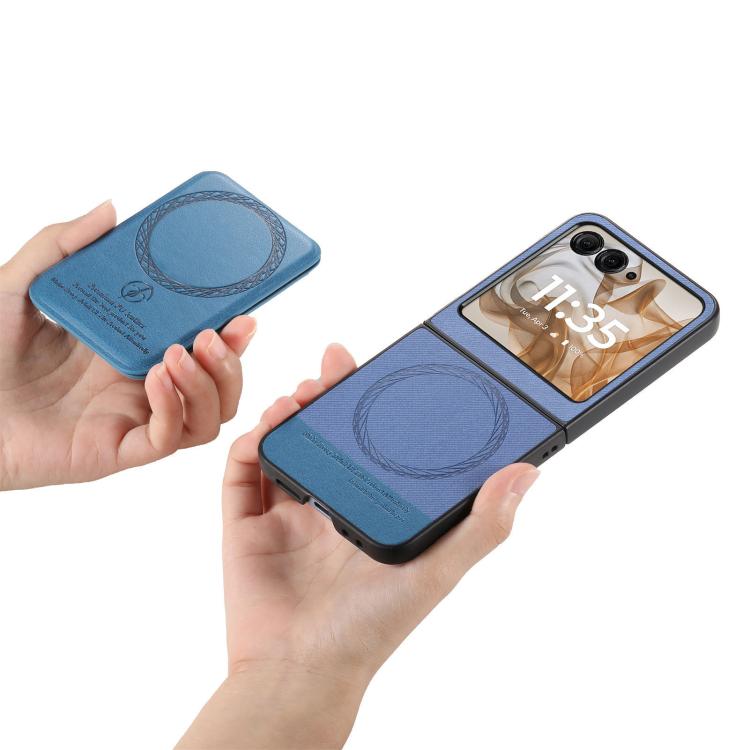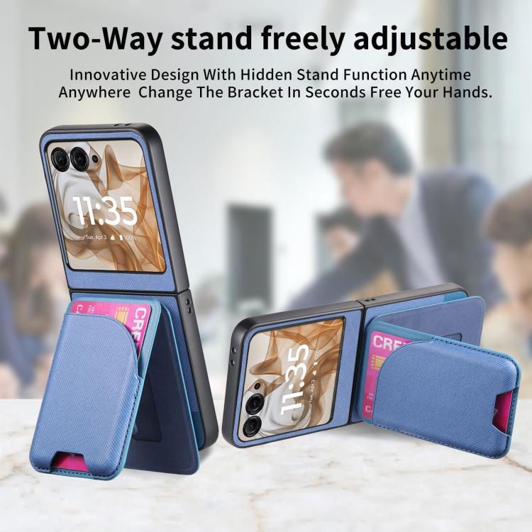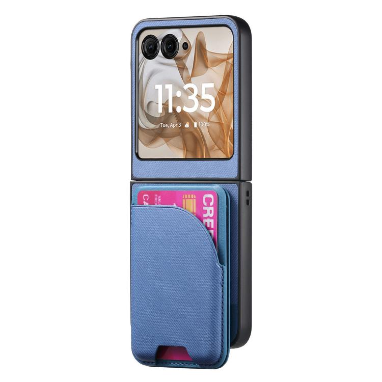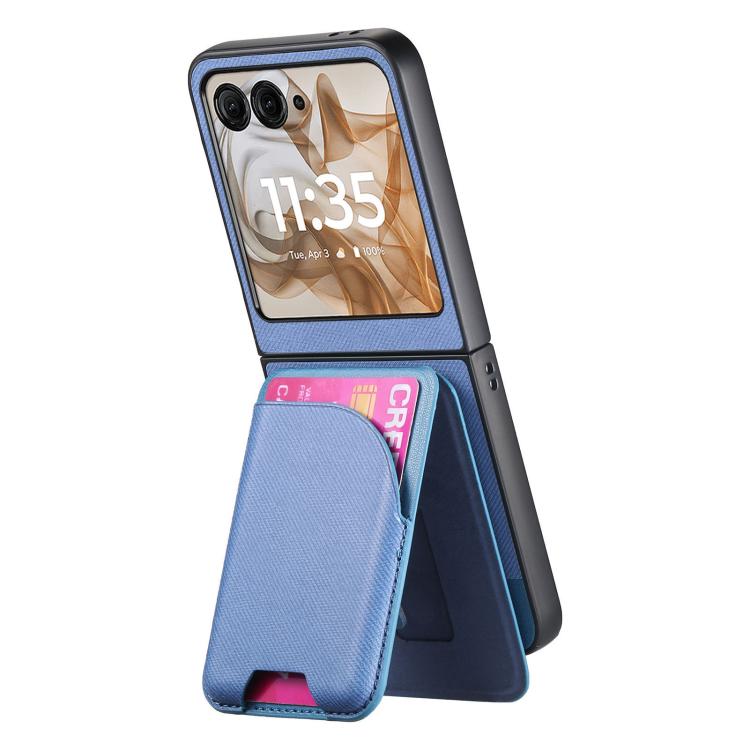 Funda Magnética para Motorola Razr 50 de Piel y Sarga con Tarjetero (Azul)