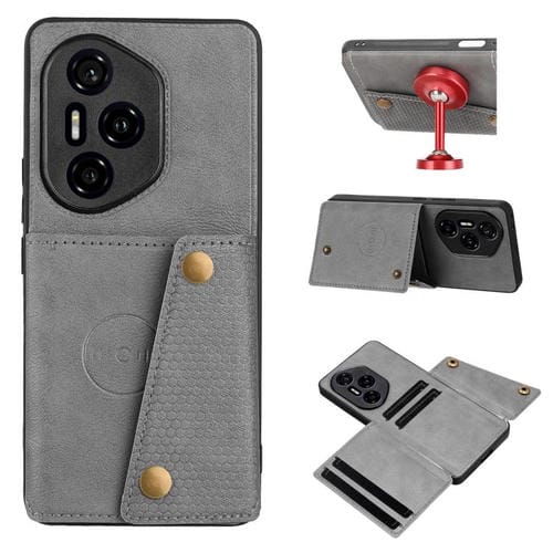 Funda Magnética para Honor 300 Pro con Ranuras para Tarjetas y Doble Hebilla (Gris)