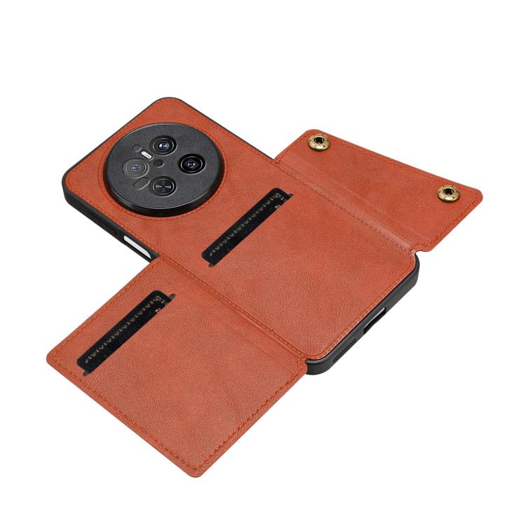 Funda Magnética para Huawei Mate 70 con Ranuras para Tarjetas y Doble Hebilla (Marrón)