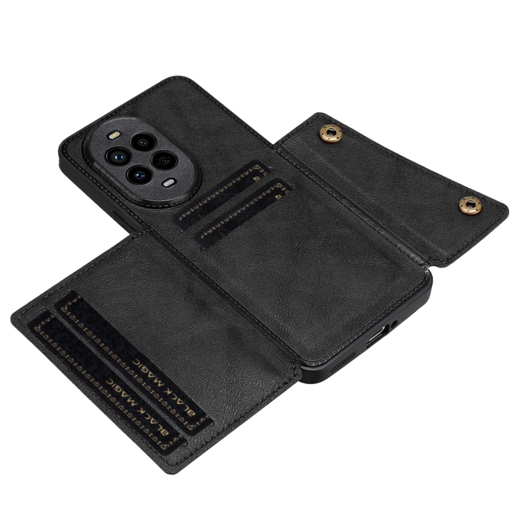 Funda Magnética para Huawei Nova 13 Pro con Ranuras para Tarjetas y Doble Hebilla (Negra)
