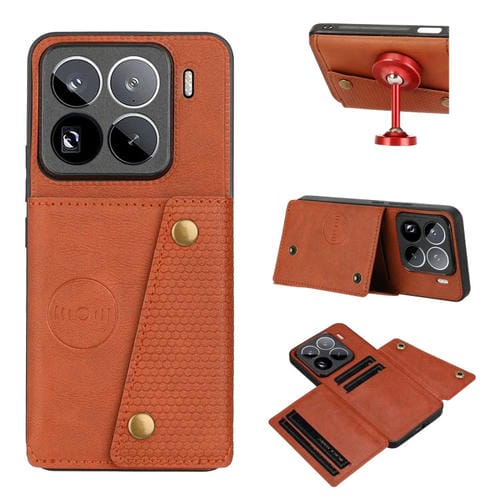 Funda Magnética Para Teléfono Con Ranuras Para Tarjetas Y Doble Hebilla Para Xiaomi 15 Pro (Marrón)