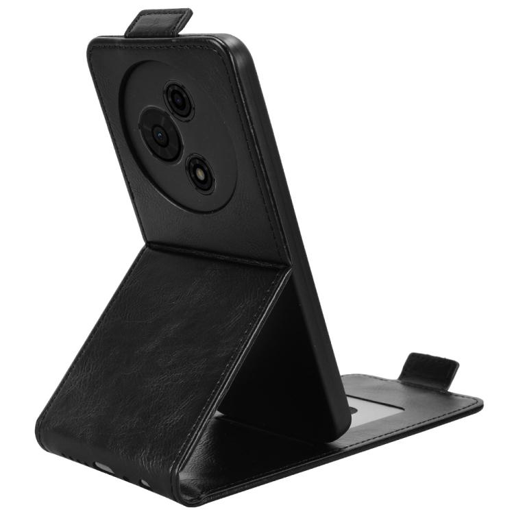Funda magnética vertical de cuero con hebilla para TCL 605 (negra)
