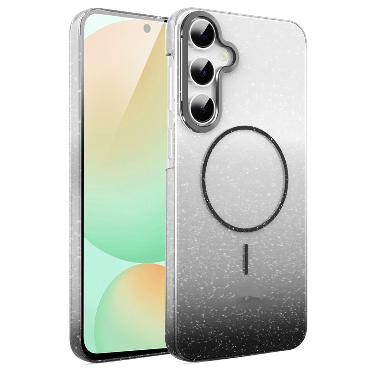 Funda MagSafe a prueba de golpes para Samsung Galaxy S24 FE 5G con purpurina dorada y degradado (negro)