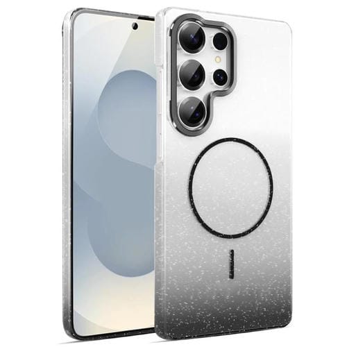 Funda MagSafe a prueba de golpes para Samsung Galaxy S25 Ultra 5G con purpurina dorada y degradado (negro)