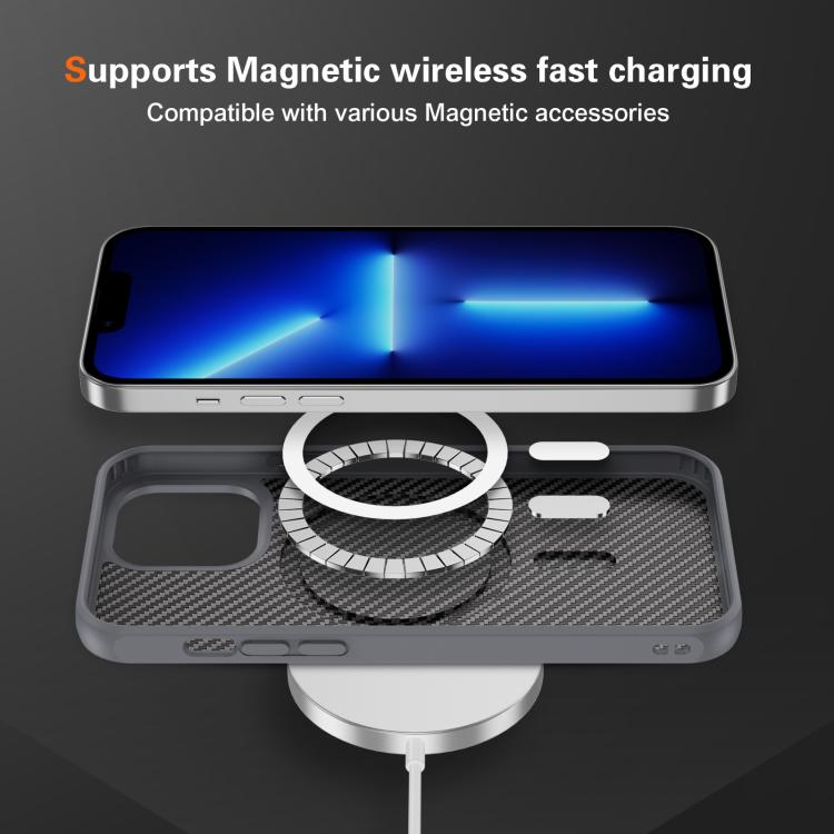 Funda MagSafe con textura de fibra de carbono y tacto suave para iPhone 13 Pro (gris)