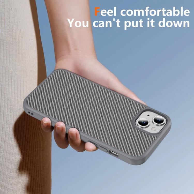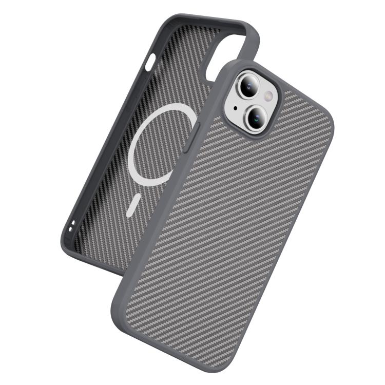 Funda MagSafe con textura de fibra de carbono y tacto suave para iPhone 15 (gris)