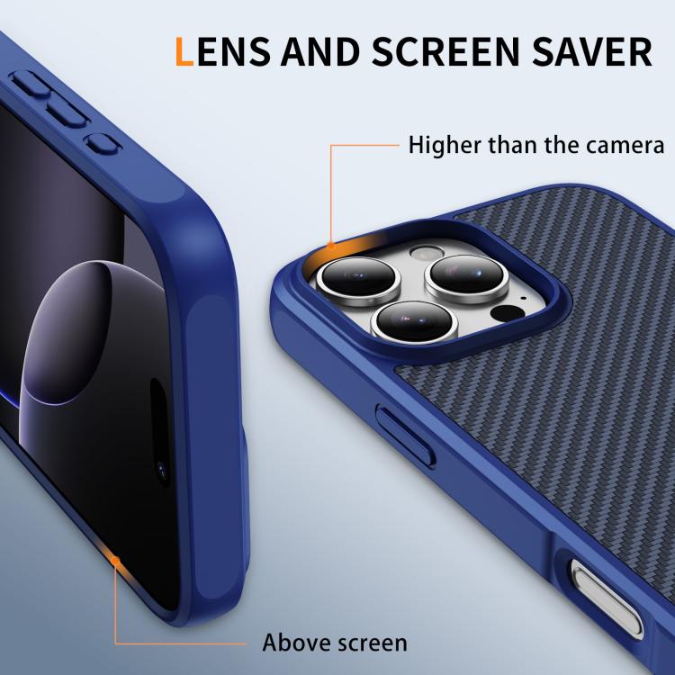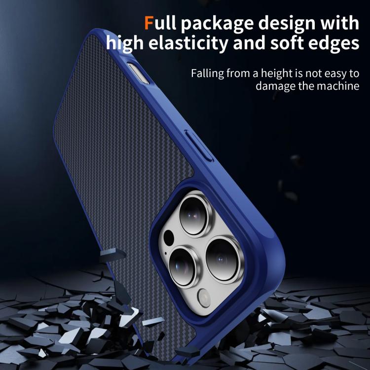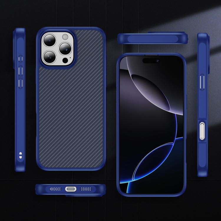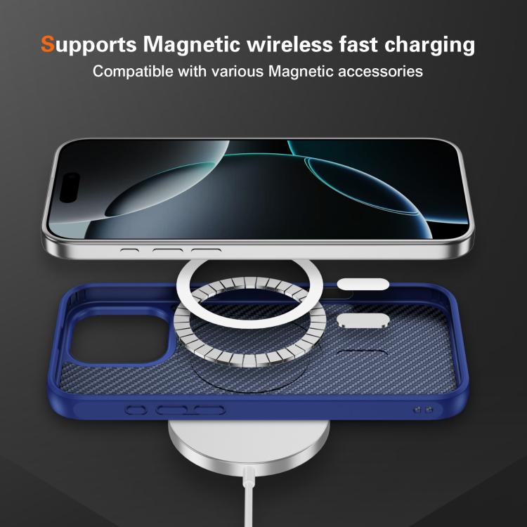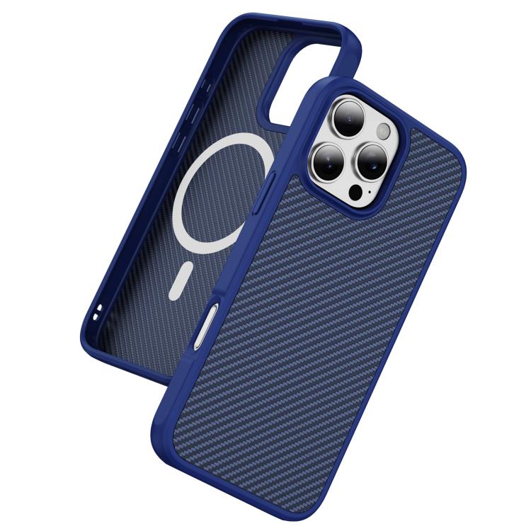 Funda MagSafe con textura de fibra de carbono y tacto suave para iPhone 16 Pro (azul)