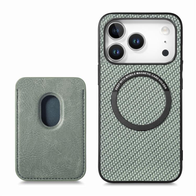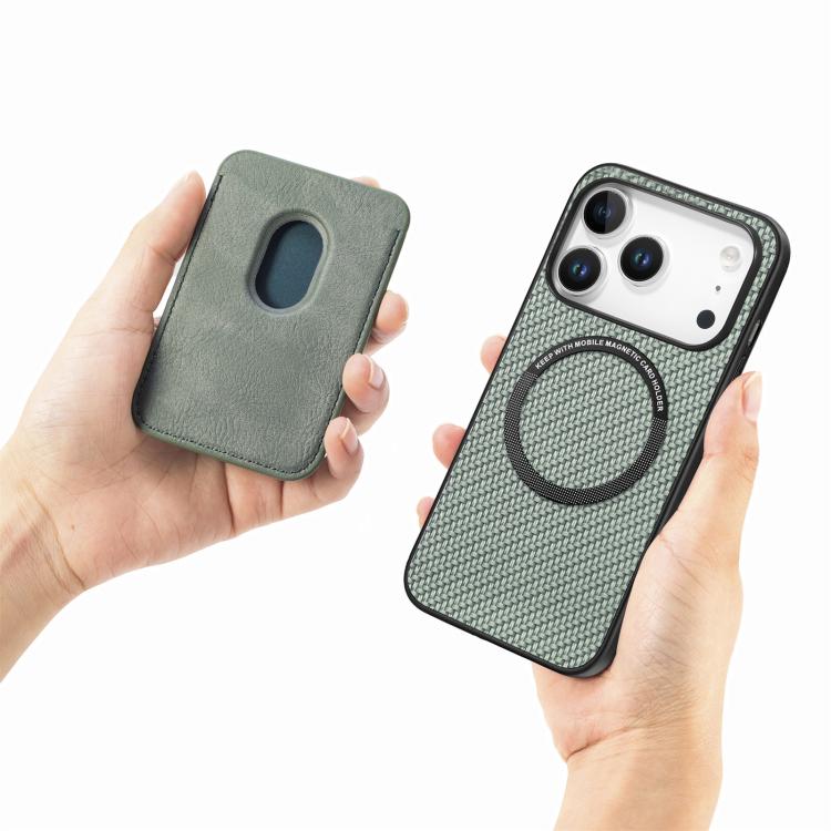 Funda Magsafe de cuero y fibra de carbono para iPhone 17 Pro (verde)