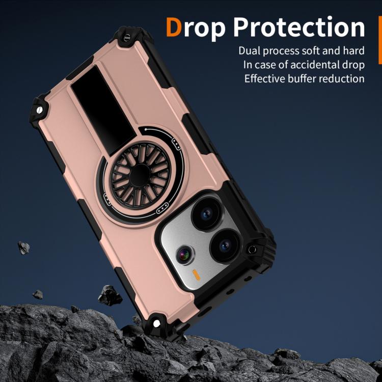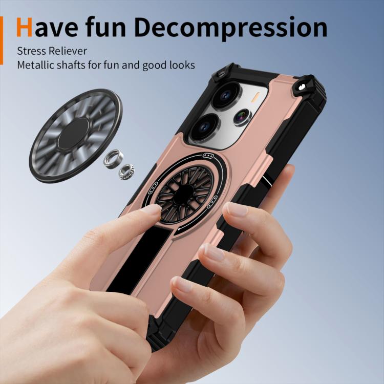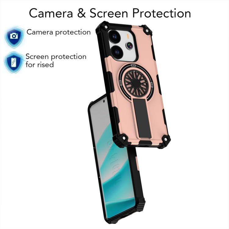 Funda MagSafe para Redmi Note 14 4G de 163,25 mm con soporte metálico y eje a prueba de golpes (oro rosa)