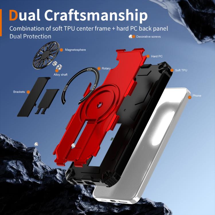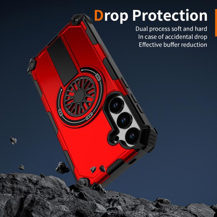 Funda MagSafe para Samsung Galaxy S24+ 5G, a prueba de golpes, con soporte metálico y eje (rojo)