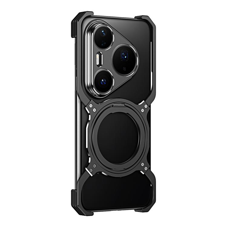 Funda metálica con soporte MagSafe sin bordes para Huawei Pura 80 Pro+ (negro y plateado)