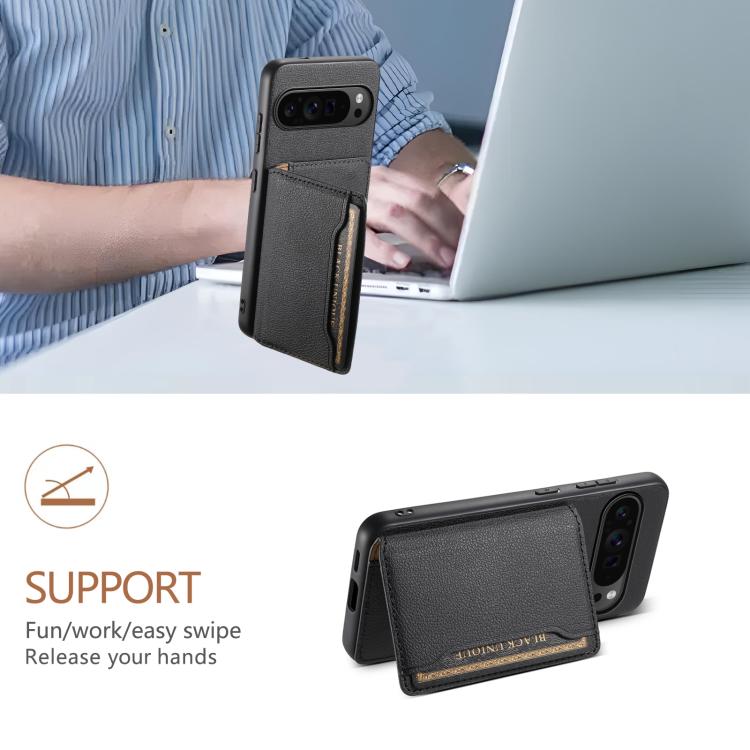 Funda para Google Pixel 10 Pro/10 con textura de becerro y diseño de bolso de tarjeta de cobertura total (negra)