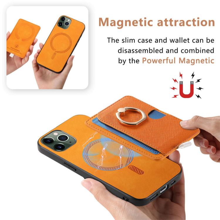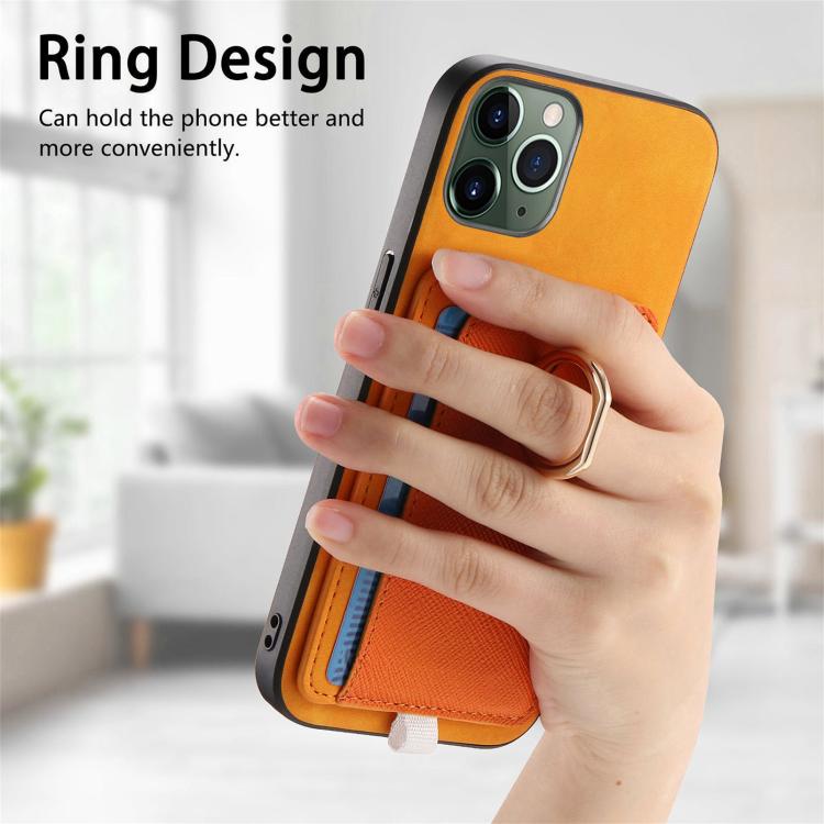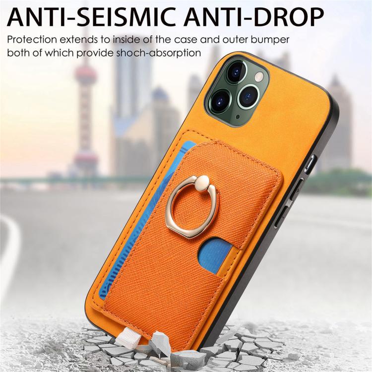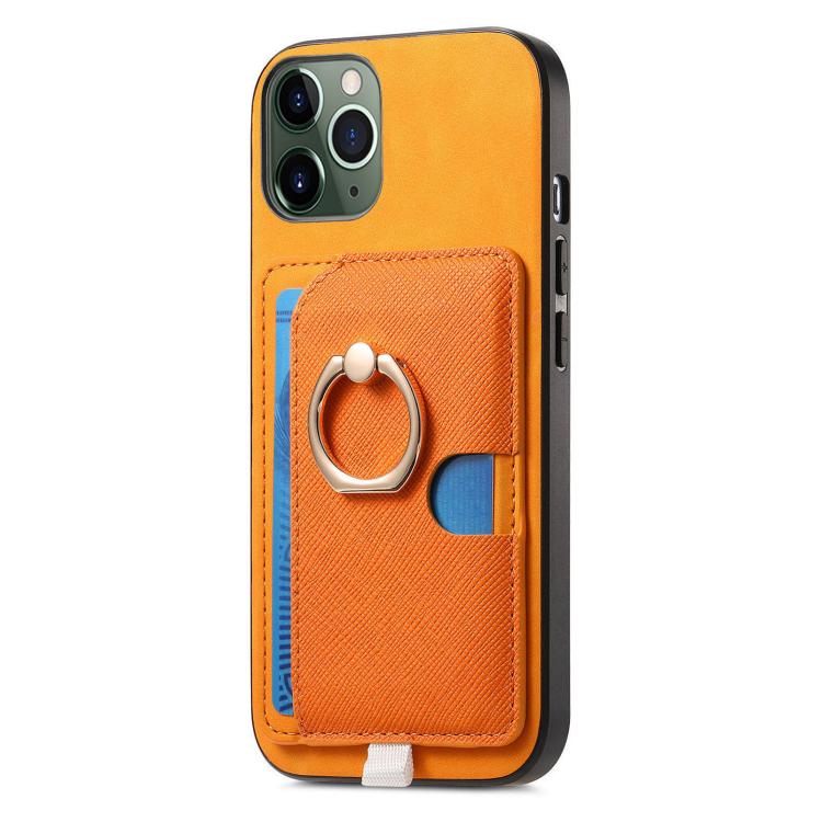 Funda para iPhone 11 Pro Cuero Diseño Retro Cruzado Ranuras Tarjetas Anillo (Amarillo)