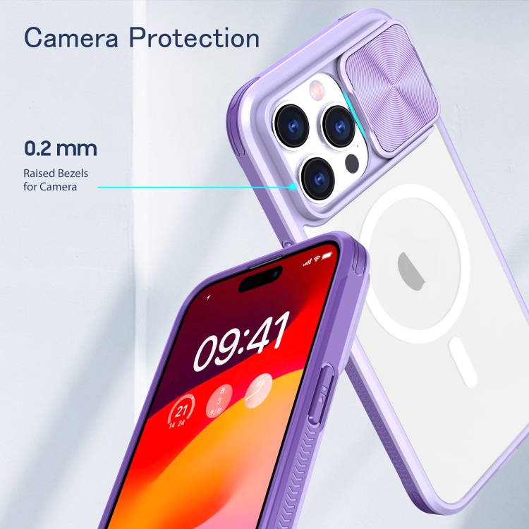 Funda para iPhone 12 Pro Max Acrílico Transparente PC TPU Magsafe Cubierta Deslizante (Morado)