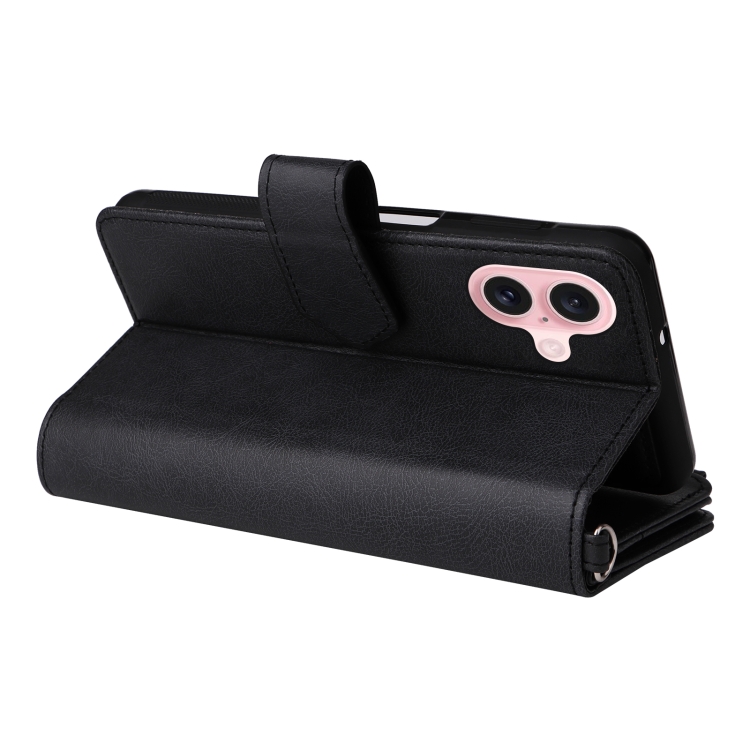 Funda para iPhone 16 2 en 1 con Cremallera a Prueba de Golpes (Negro)