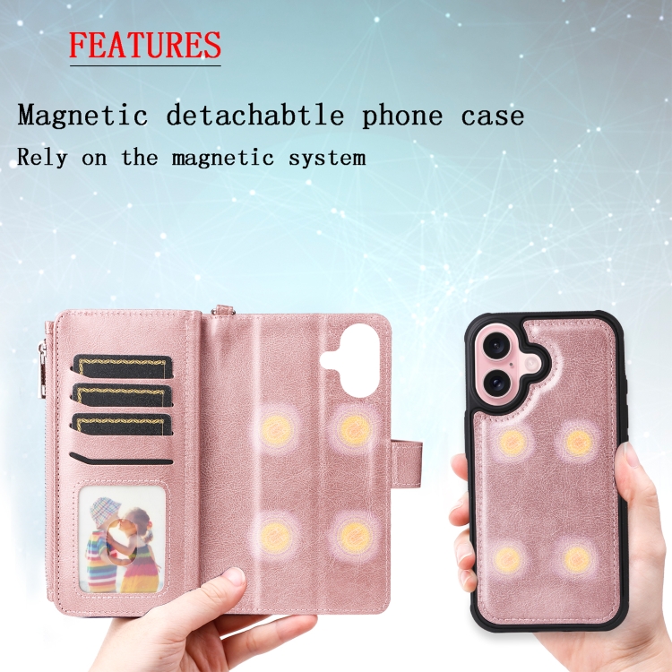 Funda para iPhone 16 2 En 1 con Cremallera a Prueba de Golpes (Oro Rosa)