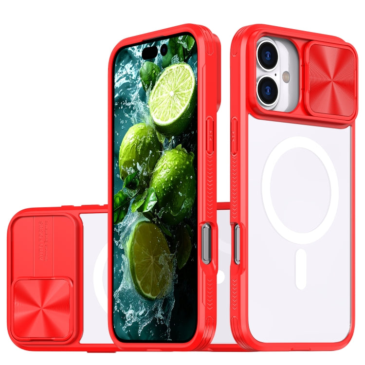 Funda para iPhone 16 Cubierta Deslizante Acrílico Transparente PC TPU Lente Magsafe (Rojo Chino)