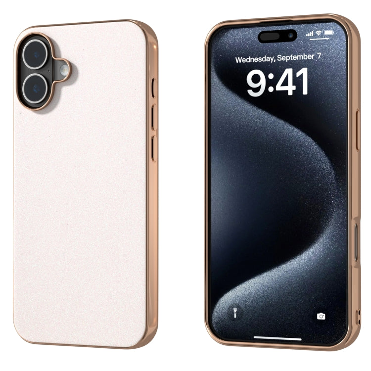 Funda para iPhone 16 con Marco Galvanizado y Purpurina a Prueba de Golpes (Blanca)