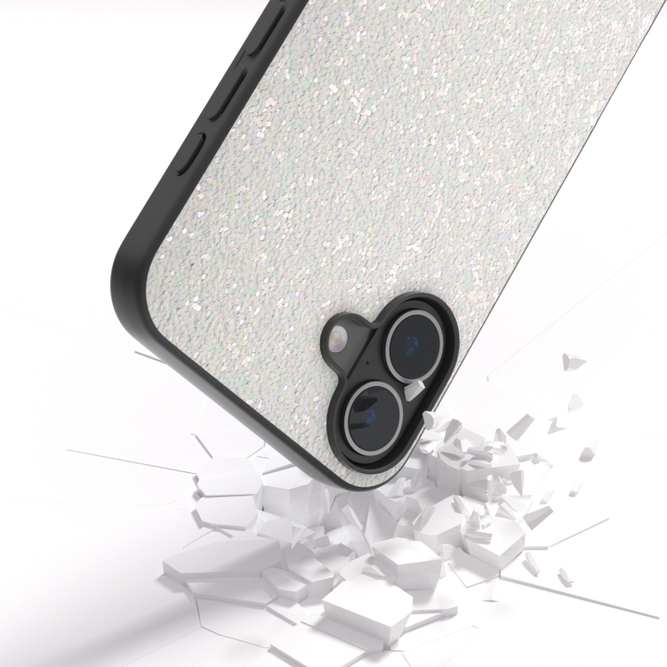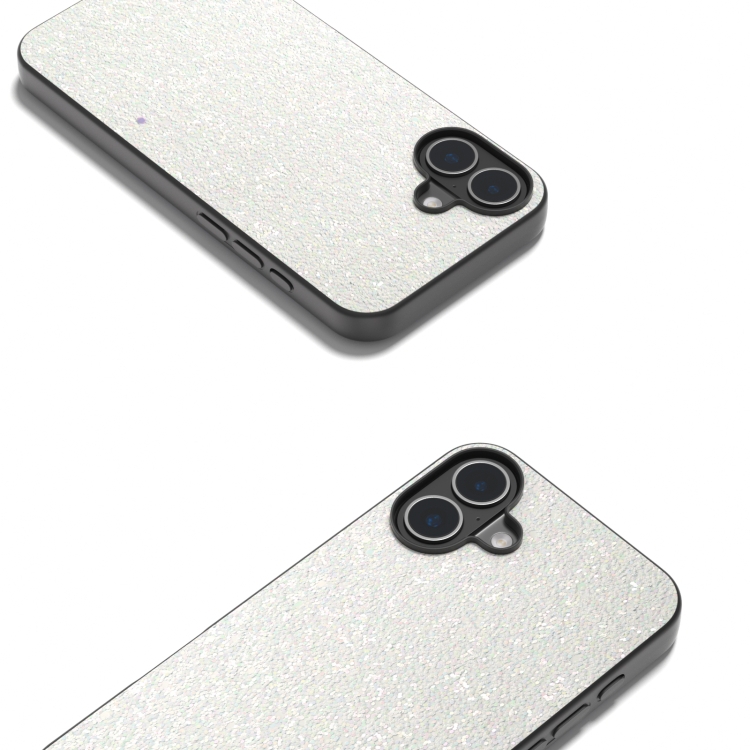 Funda para iPhone 16 con Marco Negro y Purpurina de Colores (Blanca)