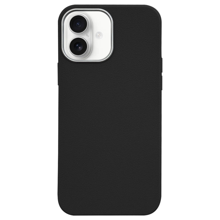 Funda para iPhone 16 con Marco para Cámara y Borde Plateado con Patrón de Lichi (Negra)