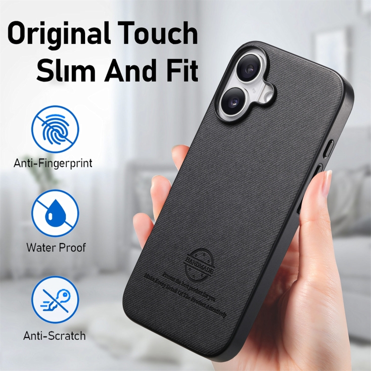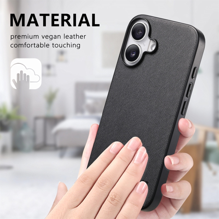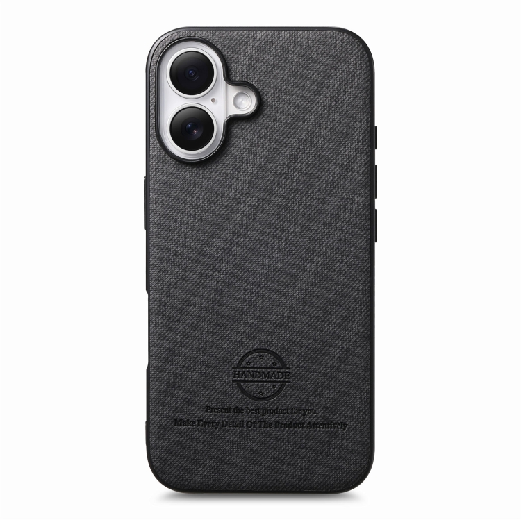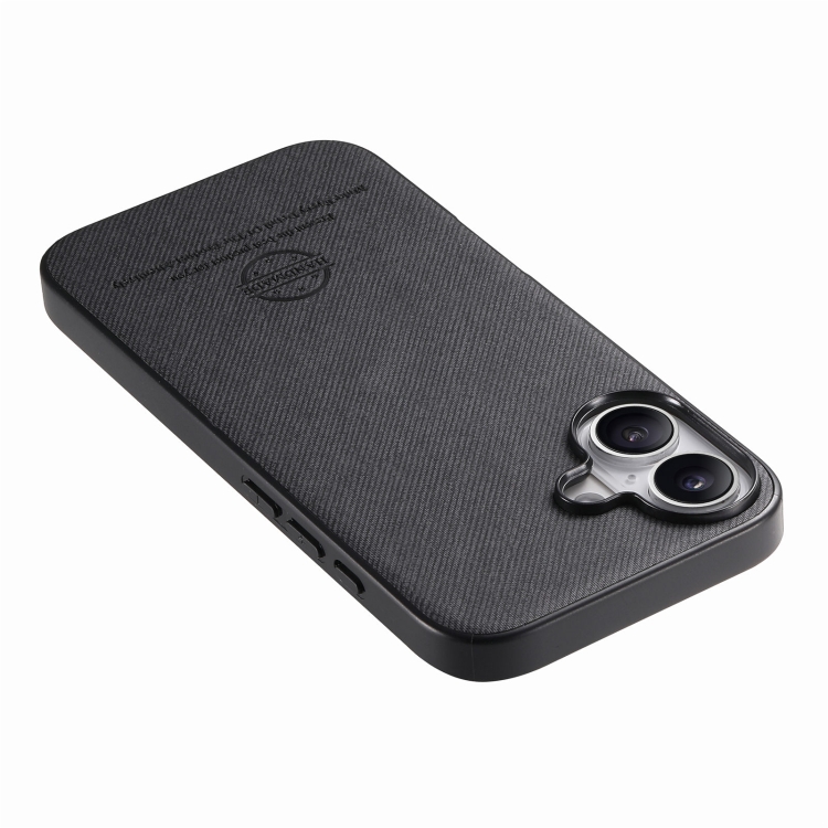 Funda para iPhone 16 con Parte Trasera de Piel y Tejido de Sarga (Negra)