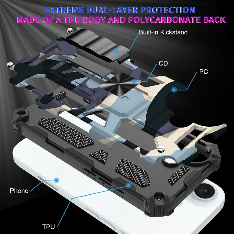 Funda híbrida TPU y PC con soporte magnético para iPhone 16 (Azul Marino)