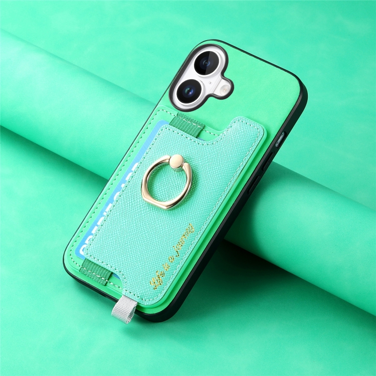 Funda para iPhone 16 Cuero con Tarjetero y Anillo Diseño Retro Magsafe (Verde)