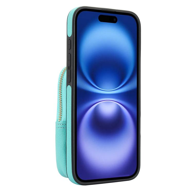 Funda para iPhone 16 Plus Awquer con Cremallera y Bandolera de Piel de Lichi (Verde Menta)