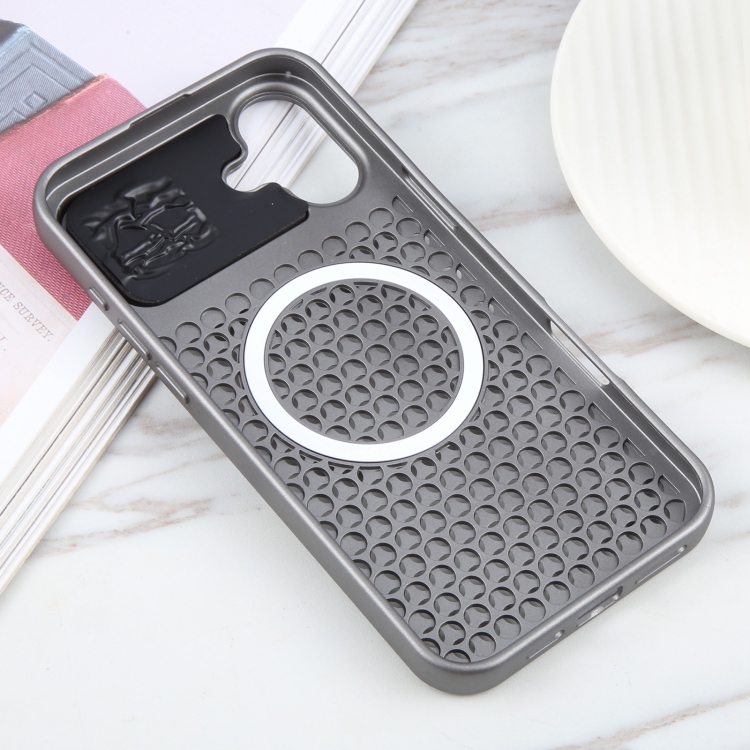 Funda para iPhone 16 Plus con Aromaterapia en Forma de Panal Color Puro y Magsafe (Gris)
