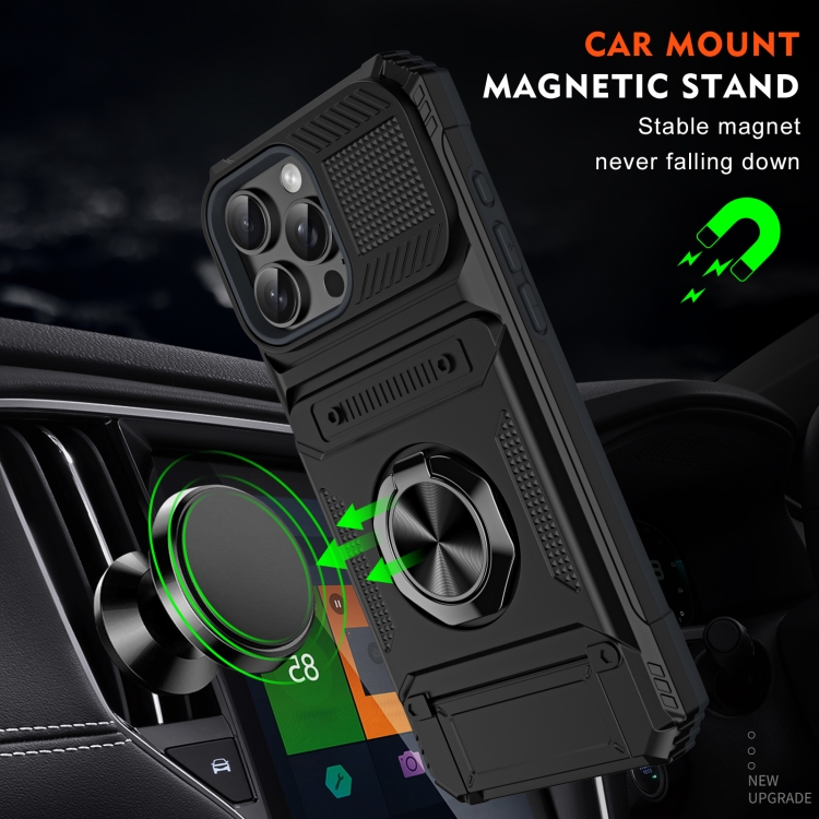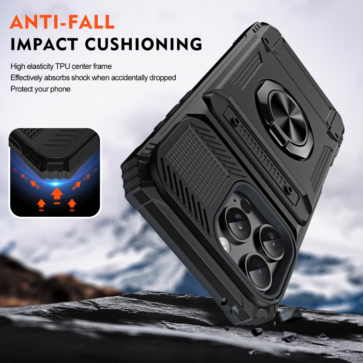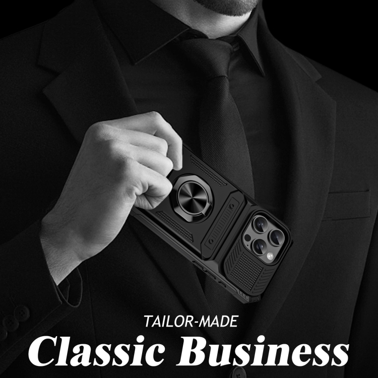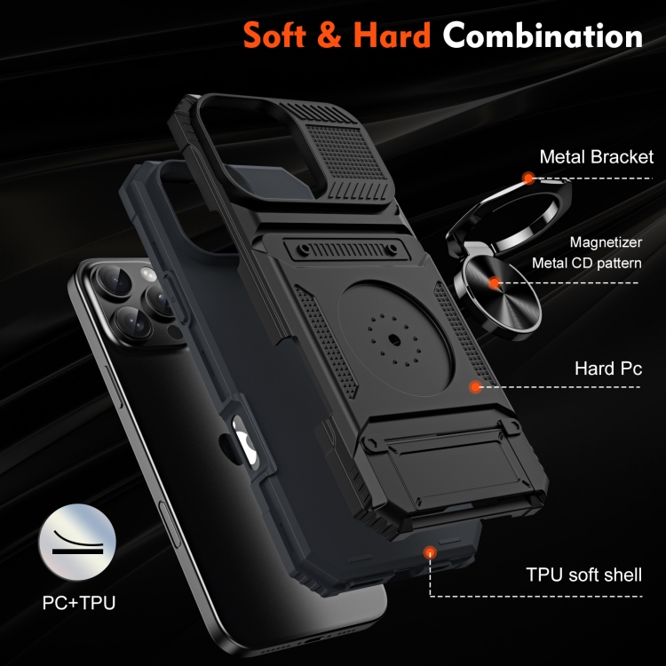 Funda para iPhone 16 Plus TPU+PC a Prueba de Golpes con Soporte de Anillo de Metal (Negro)