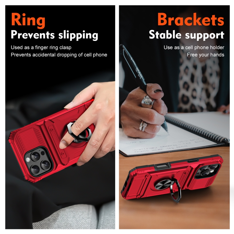 Funda para iPhone 16 Plus TPU+PC a Prueba de Golpes con Soporte de Anillo (Rojo)