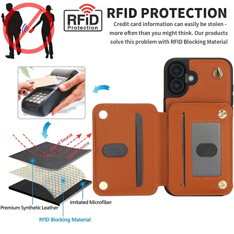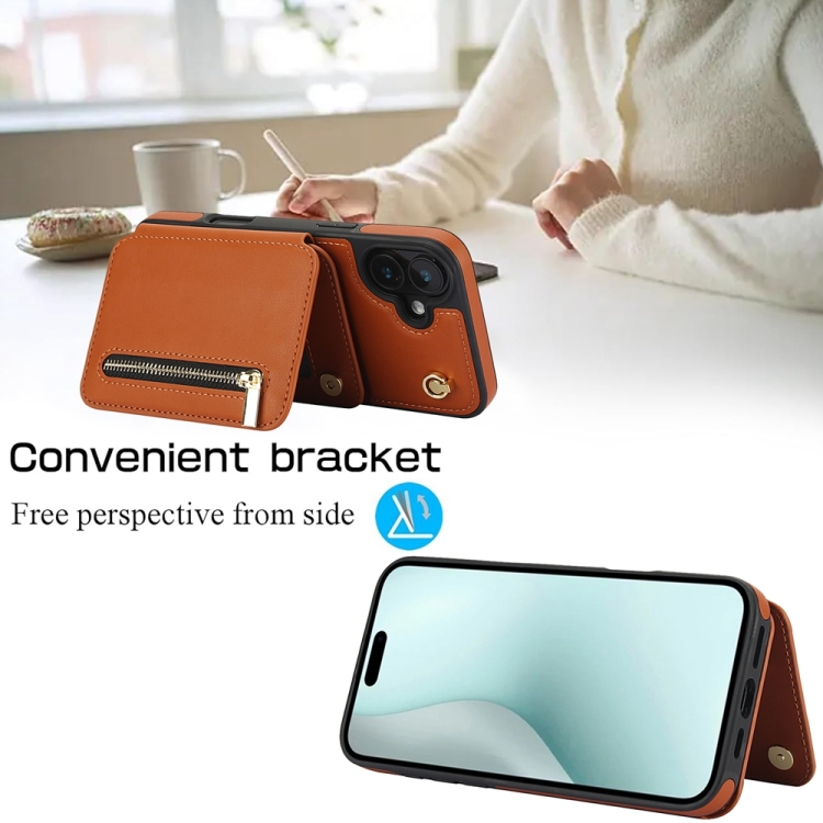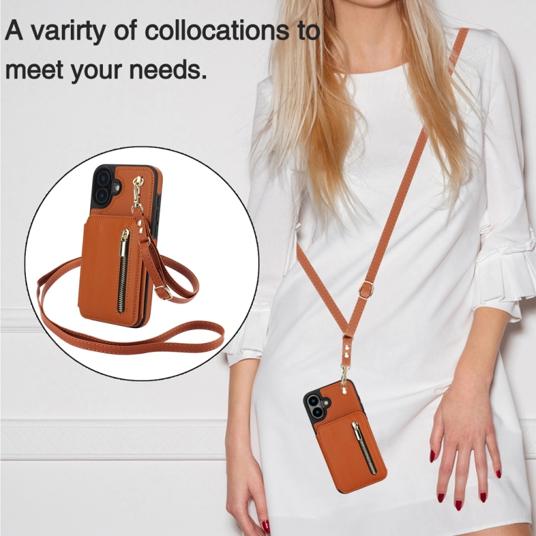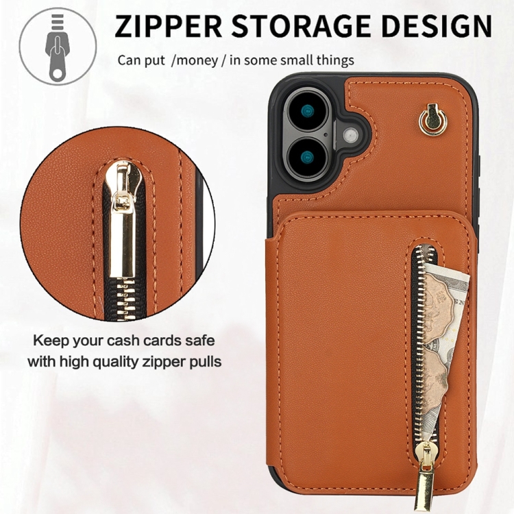 Funda para iPhone 16 Plus Ym006 con Cremallera y Doble Cordón (Marrón)