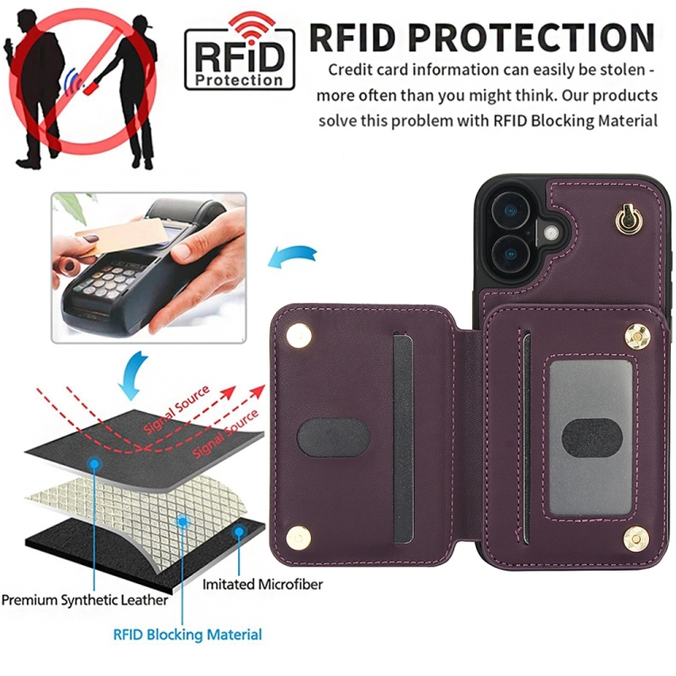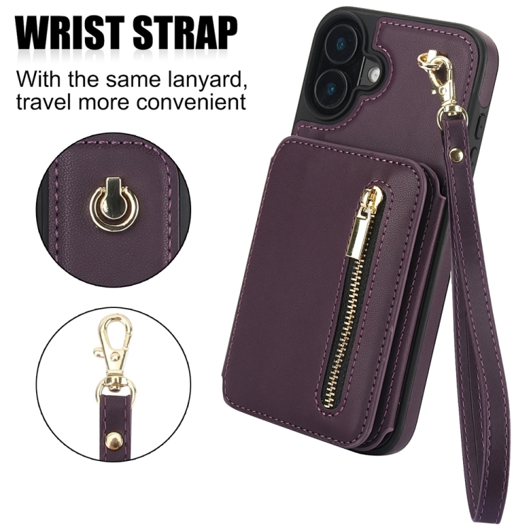 Funda para iPhone 16 Plus Ym006 con Cremallera y Doble Cordón (Morado Oscuro)