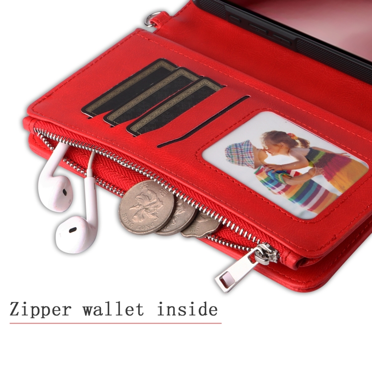 Funda para iPhone 16 Pro 2 en 1 con Cremallera y Protección a Prueba de Golpes (Rojo)