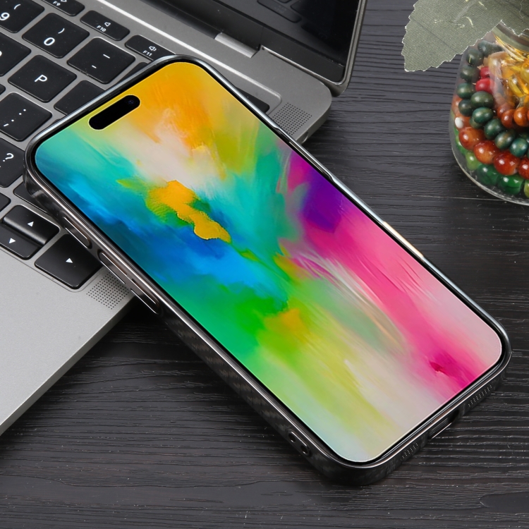 Funda para iPhone 16 Pro Carcasa PC Fibra de Carbono Transparente Revestimiento Magsafe 6D (Gris Titanio)
