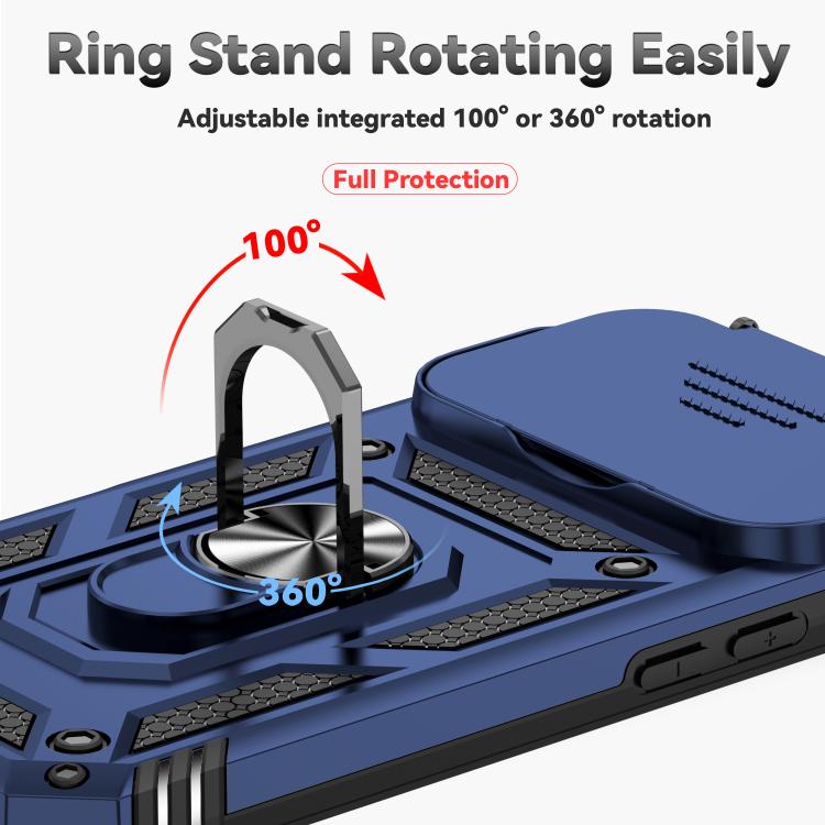 Funda para iPhone 17 Pro con soporte deslizante tipo cámara (azul)