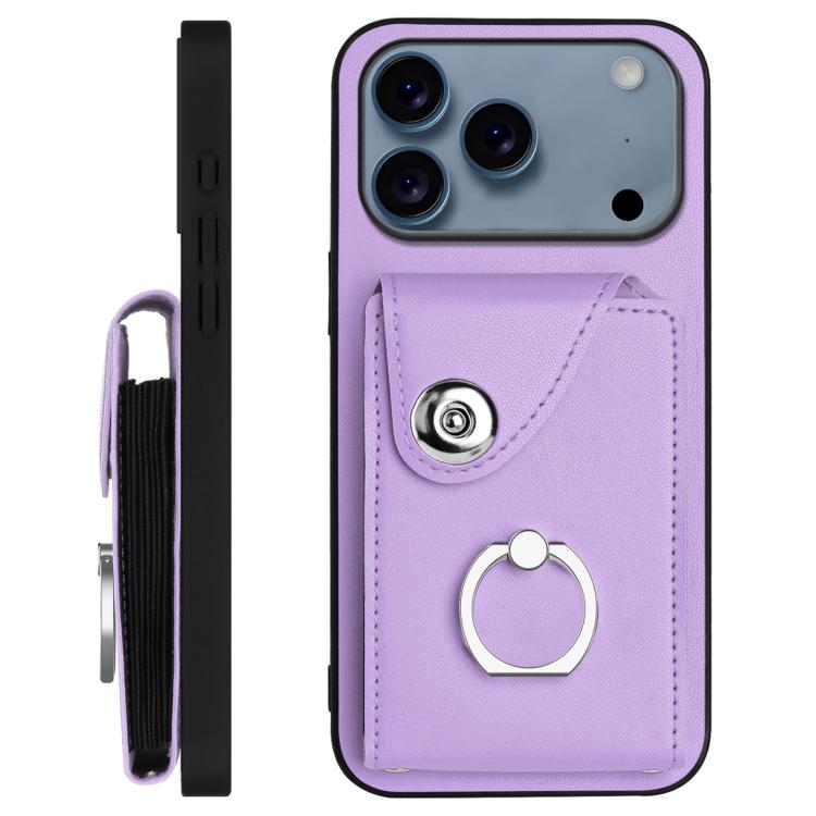 Funda para iPhone 17 Pro con tarjetero, anilla y cordón largo (morado)