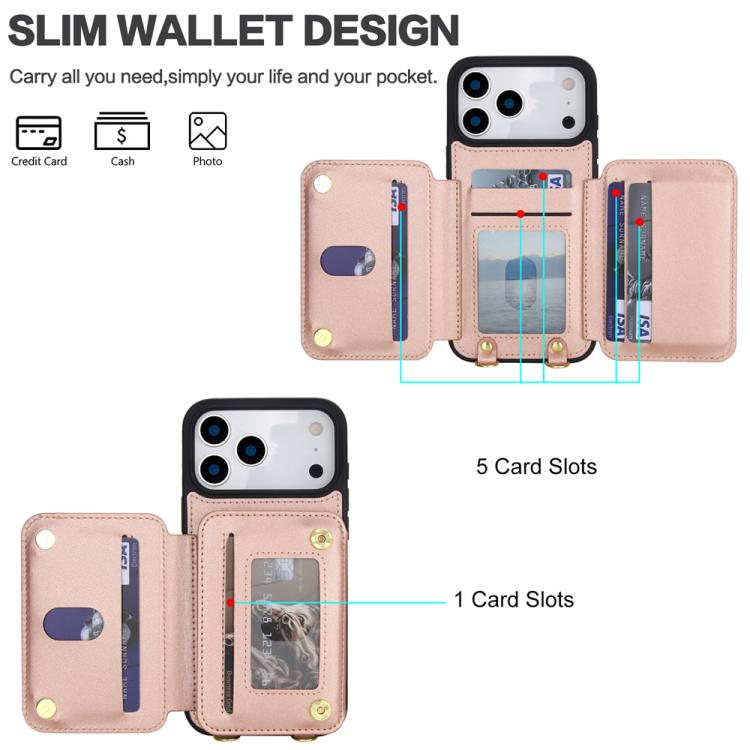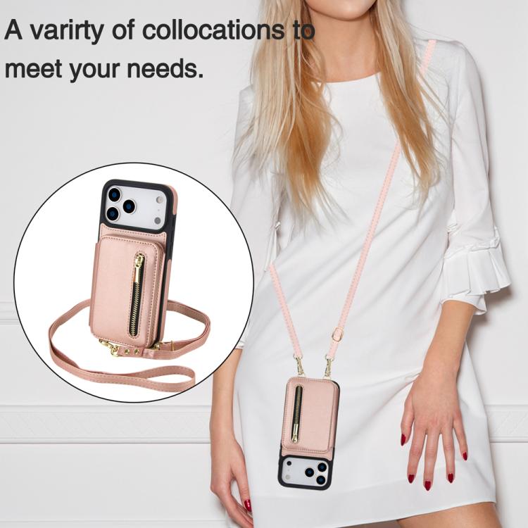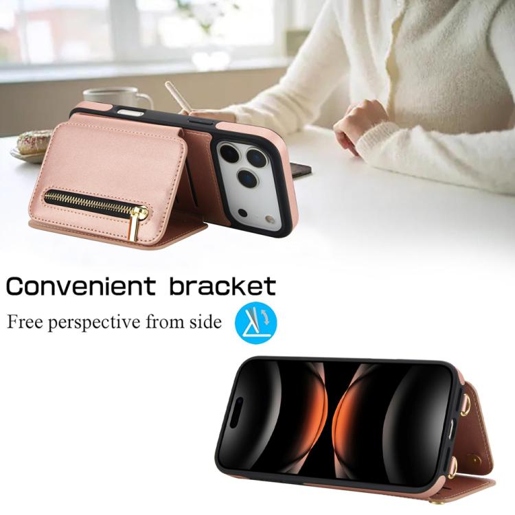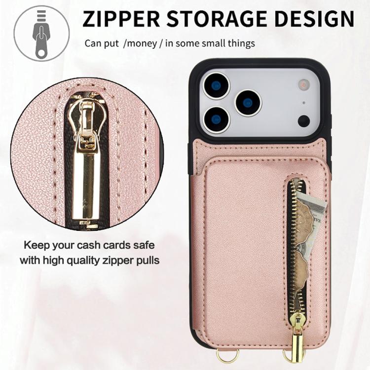 Funda para iPhone 17 Pro YM006 con cremallera y doble cordón (oro rosa)