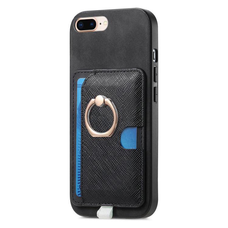 Funda para iPhone 7 Plus/8 Plus con Ranuras para Tarjetas Diseño Retro Cruz y Anillo Lateral (Negro)