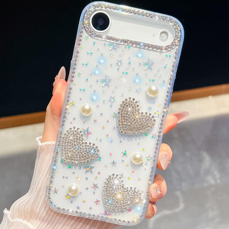 Funda para iPhone Air con diseño de corazón perlado y purpurina de diamante, cuatro esquinas, a prueba de golpes (estrellas transparentes)