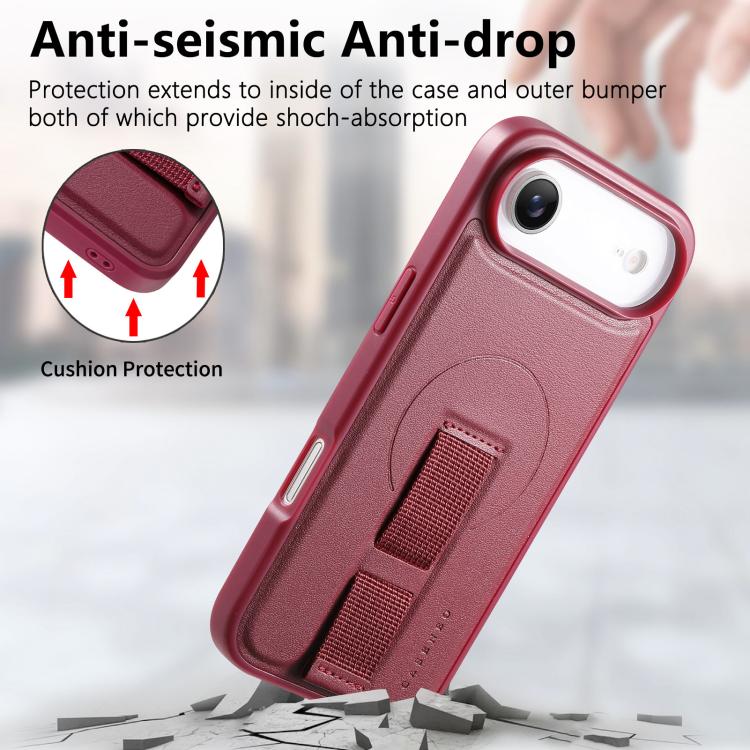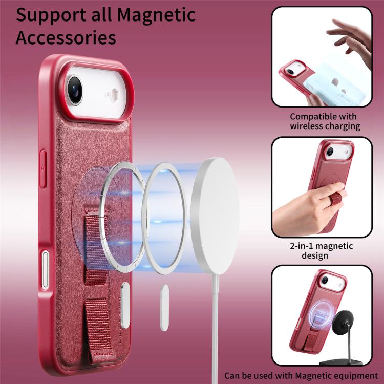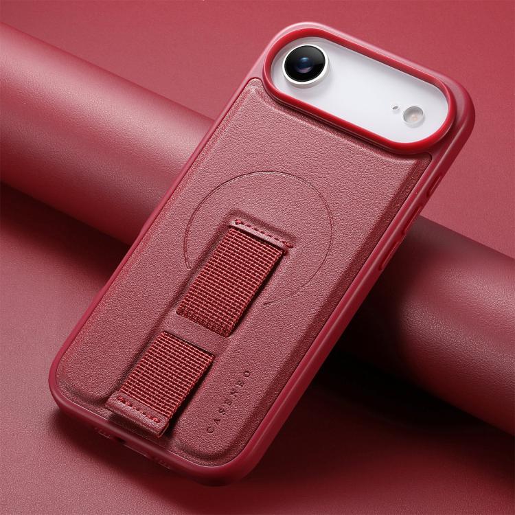 Funda para iPhone Air Neo con correa de agarre para los dedos y parte trasera MagSafe (roja)