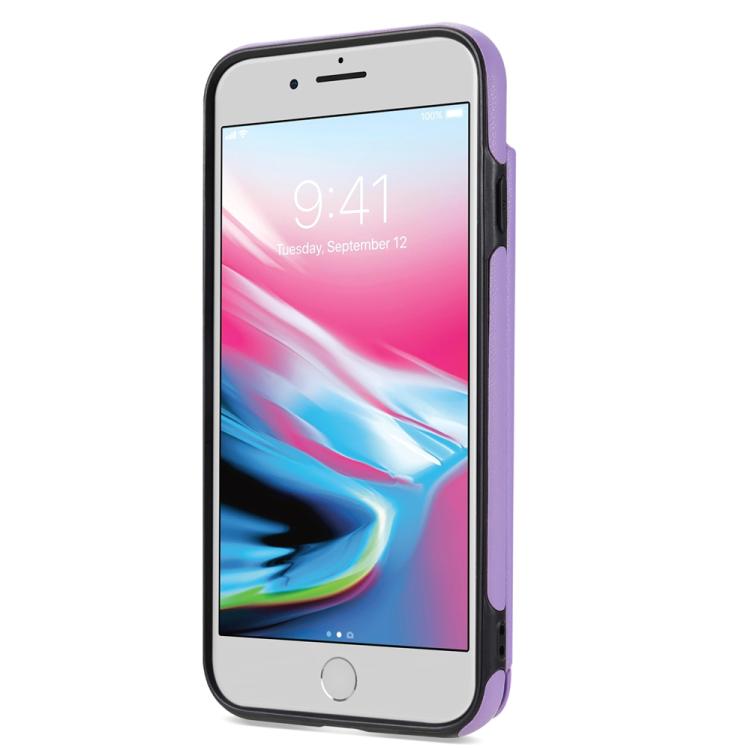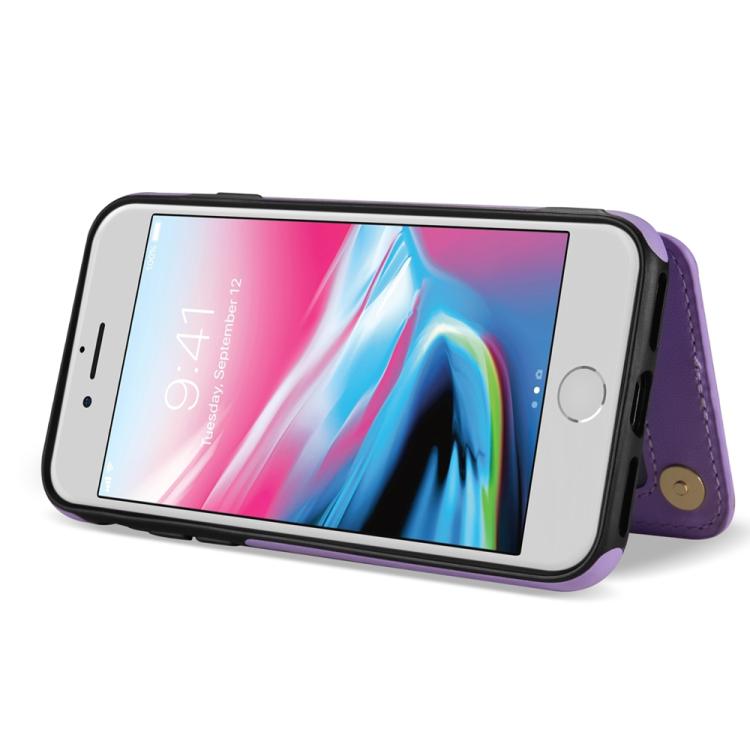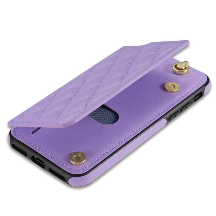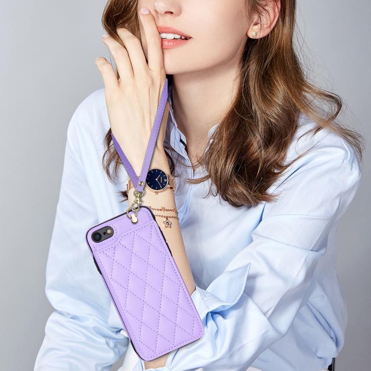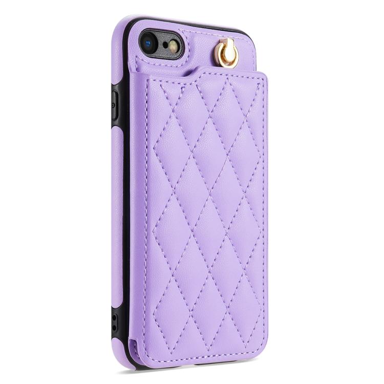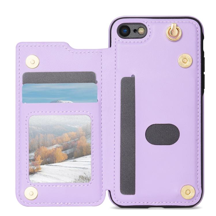Funda para iPhone SE 2022/2020/8/7 con Ranuras para Tarjetas y Hebilla Doble Rombal y Cordón (Morado)